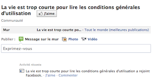 Par exemple, le document ci-dessous montre qu'un groupe a été créer dans le le but de montrer la non lecture des conditions générales d'utilisation qui sont pourtant primordiale quant à la protection de la vie privée.